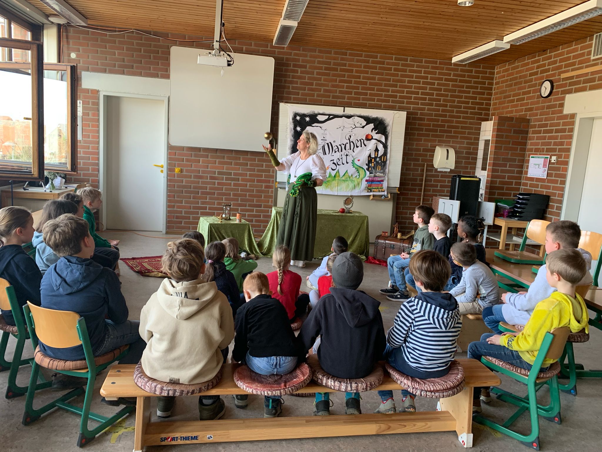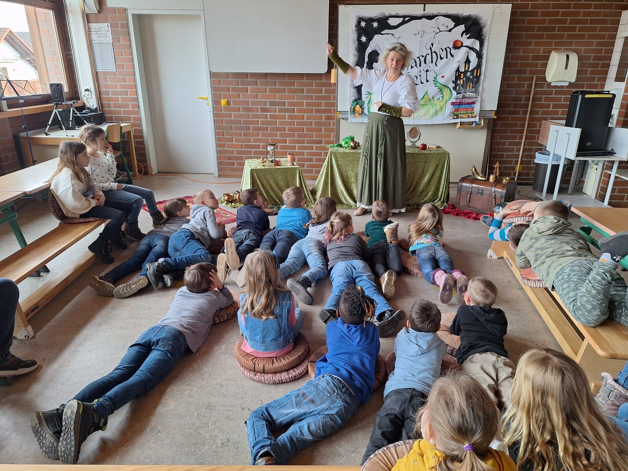 Alle Klassen bekamen Märchen erzählt - von Klassikern wie Frau Holle, Schneewittchen über Rumpelstilzchen war alles dabei.