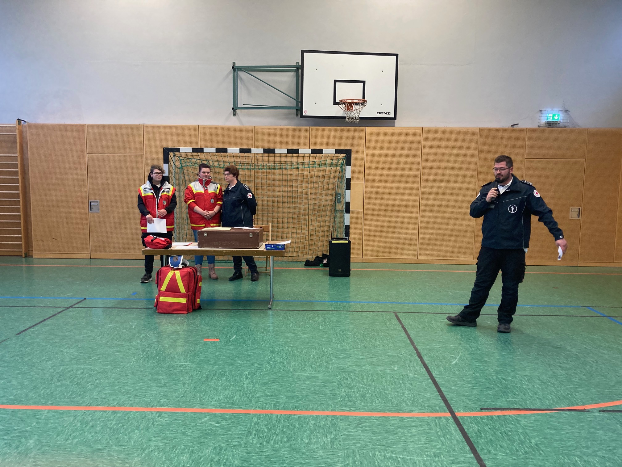 Karola Tölle, Dominic Kaltenbach, Sandra Buchholz und Anna-Maria Kaltenbach haben allen Klassen das Jugendrotkreuz Altenheim vorgestellt.