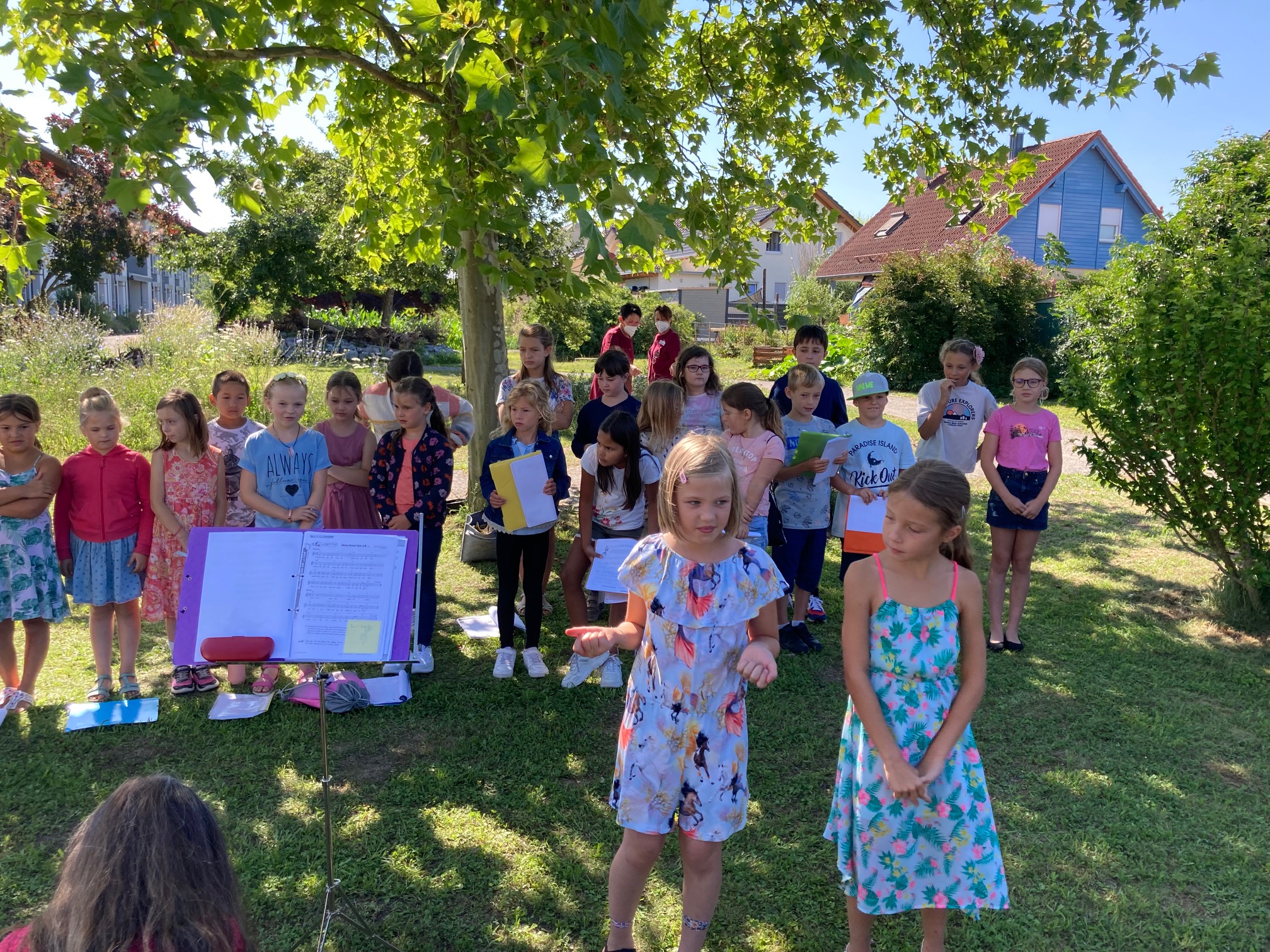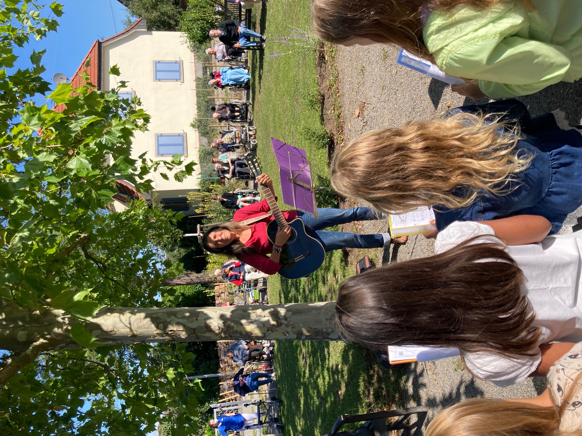 Bei herrlichem Wetter ist unser Schulchor am 8.7.22 unter der Leitung von Daniela Hansert nach 2-jähriger Coronapause wieder im Altersheim aufgetreten.
